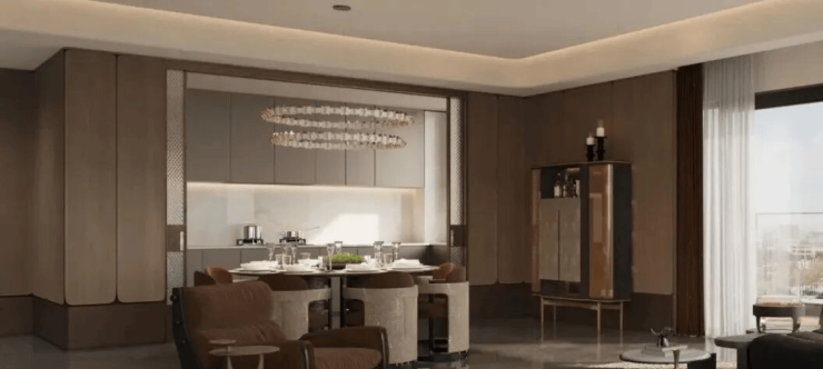 立面选用普拉达绿、温德姆灰等高定奢材