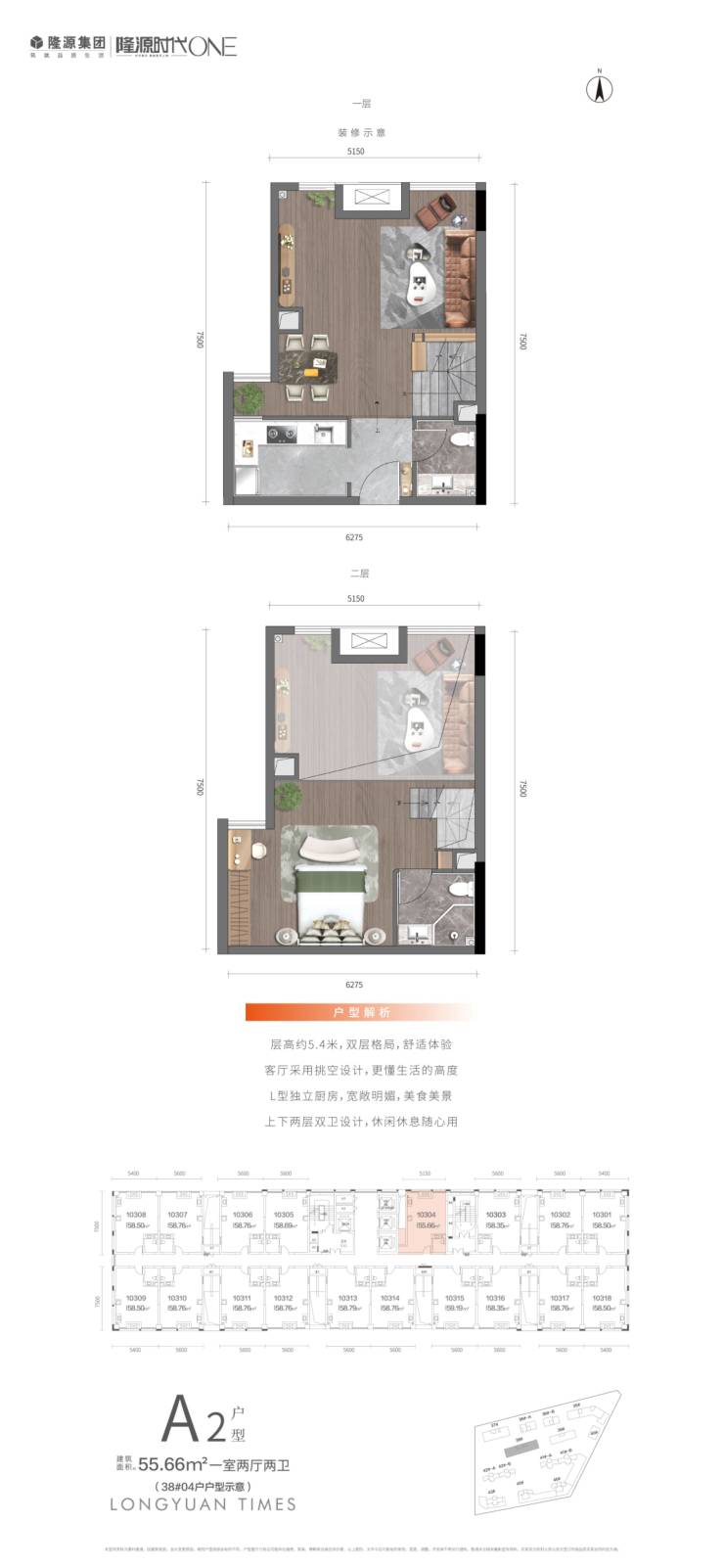 建筑面积约50-85㎡精奢著作,荣耀面世。层高约5.4米,打造双层生活,三室两厅两卫格局,满足一家人的阔朗生活,双气入户、动静分区合理,工作、生活、会客……多种生活形态融为一体,充分满足你所需要的style。