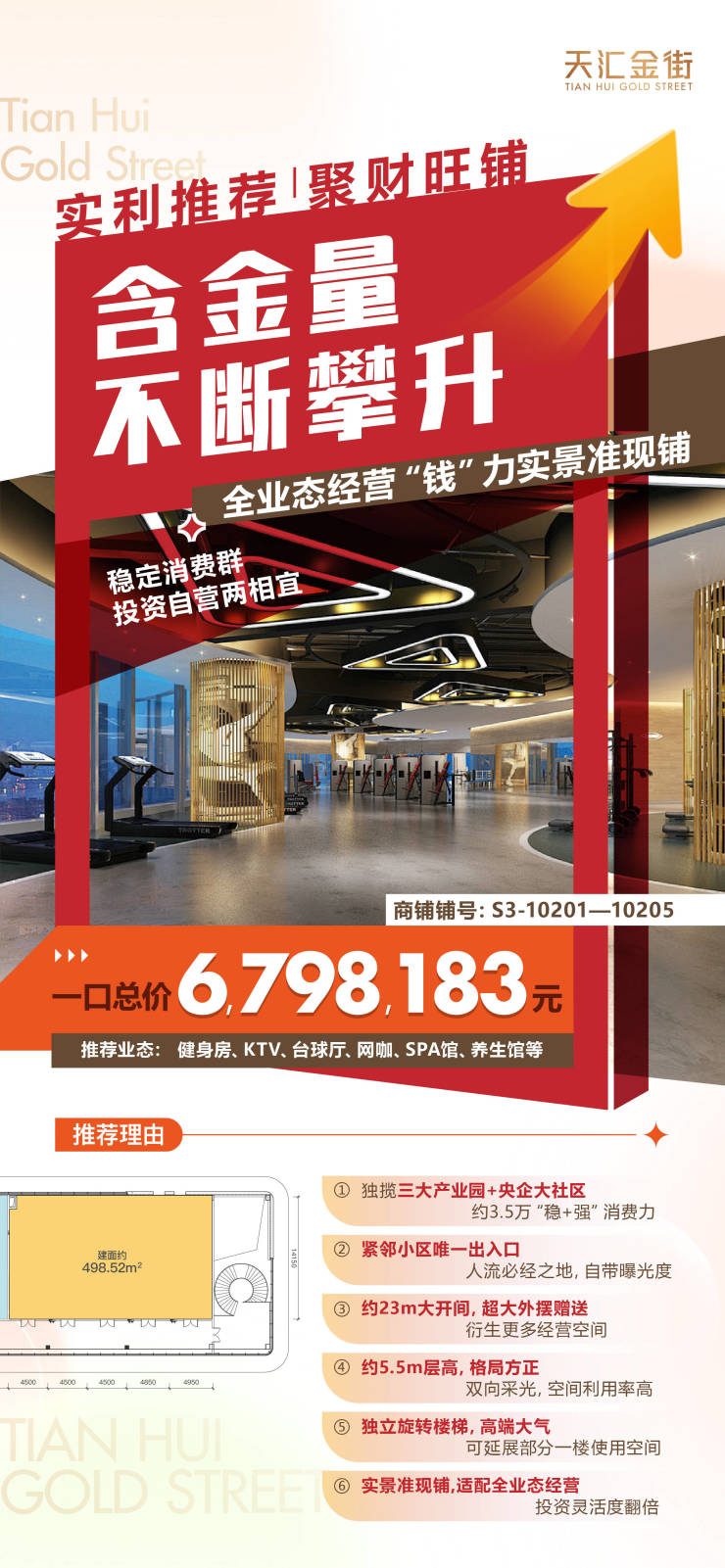 ☑半层销售:498.2㎡