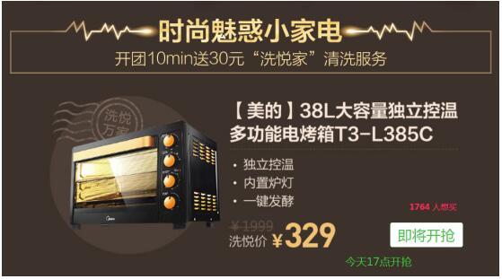 这次的活动在能够体验线下服务的同时,拥有较低价格的超值商品当然是最重要的!迅速提升生活质量的精美小家电当然是畅爽买买买的优选啦!美的38升大容量烤箱活动价只需329元。价格比双十一还低,27日下午17点准时开抢,千万不要错过!