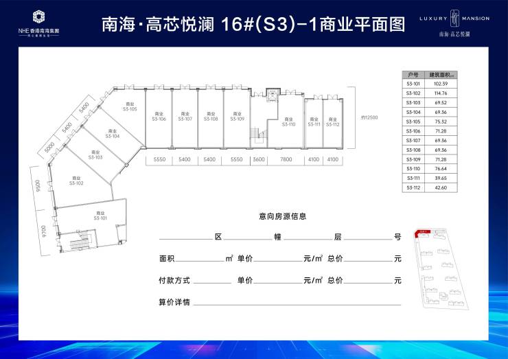 【产品面积】建筑面积约29-114㎡,户型方正,纯框架结构,紧邻地铁口与高新云轨首发站,适合多种高端业态入驻