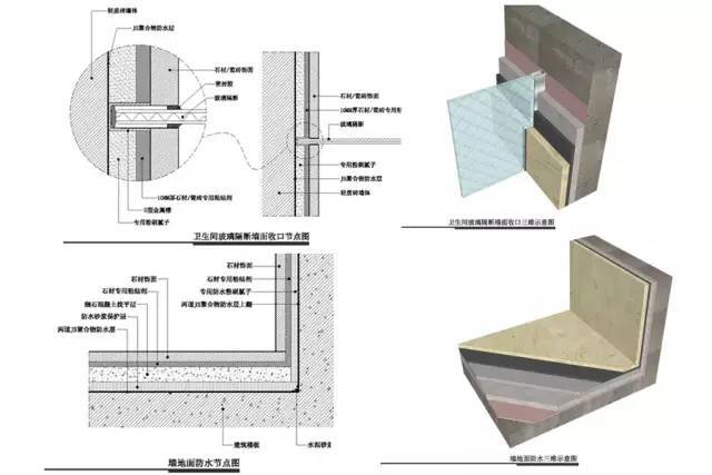 在表现结构方面,采取三维透视、剖面图、大样图形式表达,更加直观,便于理解。在SU建模中,将材料、原始结构、隐蔽工程等