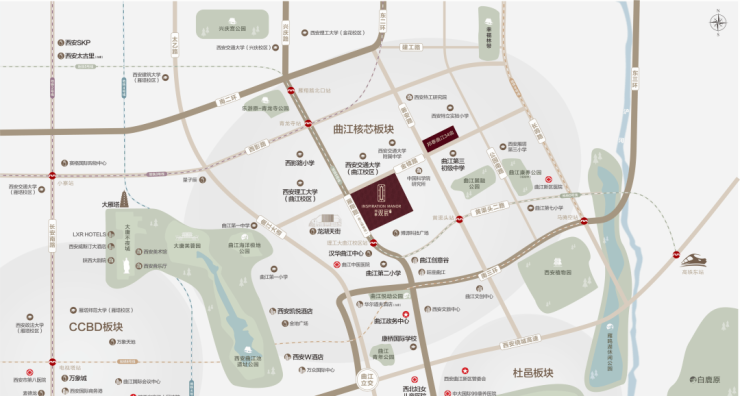 观宸曲江择址于曲江文教园核心腹地,板块目前仅余最后1.2平方公里可开发住宅用地,以「三非准则」(非刚需产品/非普通客群/非复制地段)严选藏品级宅邸,聚集众多高品质改善住宅:形成西安罕见的"低密住区+全龄名校+高净值邻里"黄金三角。