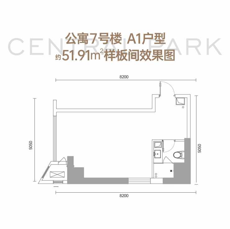 公寓7号楼A1户型51.91平米样板间效果图