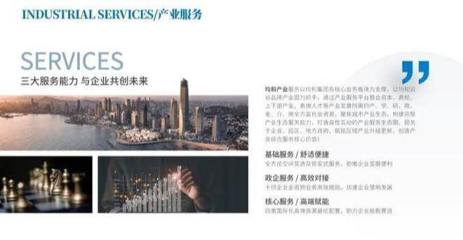 内部规划三层框架结构结构厂房31栋,五层框架结构厂房11栋,1栋产业配套楼,产品涵盖600-6500㎡分层、独栋,可满足办公、生产及研发等多种需求,重点引入5G行业、新一代信息技术、数字生态、新材料新能源、智能制造、人工智能等相关产业,旨在打造区域产业平台标杆。 项目园区建成后将由均和云谷产服平台统一运营管理,将在供应链业务平台、金融链服务、产业政策研究、产业人才培养、企业服务等方面为企业提供全方位支持,切实保证园区优质持续发展。