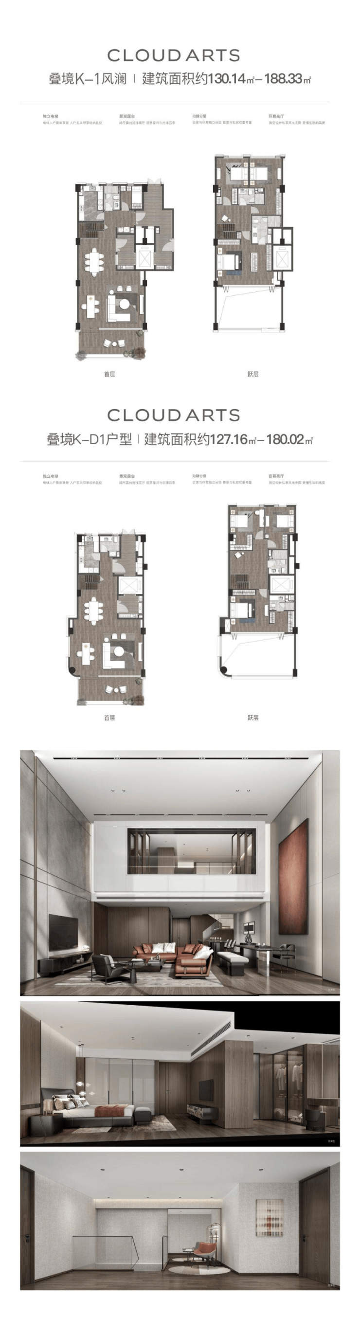 将自然与建筑相融合,设计回归山水,以现代、艺术、自然、生活四大核心理念打造,同时结合每栋风雨连廊之间的宅间乐区让社区生活充满自在的时光质感。
