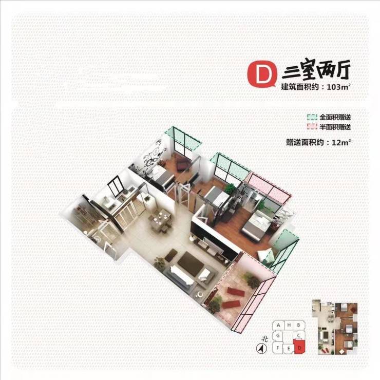 4.建筑面积:103㎡/3室2厅1卫