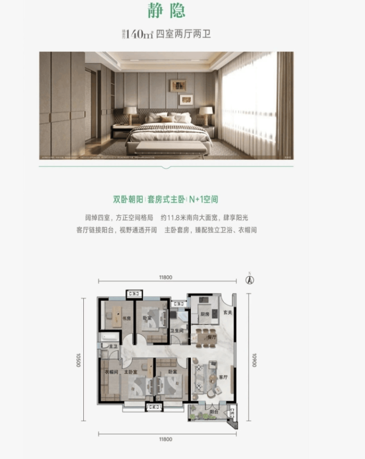 最大约80米超宽楼间距、方正通透户型设计等,匠呈主城幸福人居