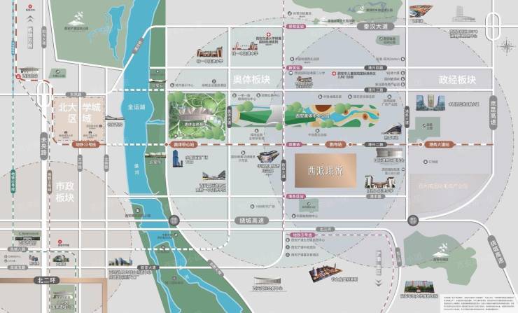 生态资源:项目北侧较近的有奥体中轴生态公园、南侧有新寺遗址公园,周边还有启航公园、灞河、以及文旅资源冰雪世界等。
