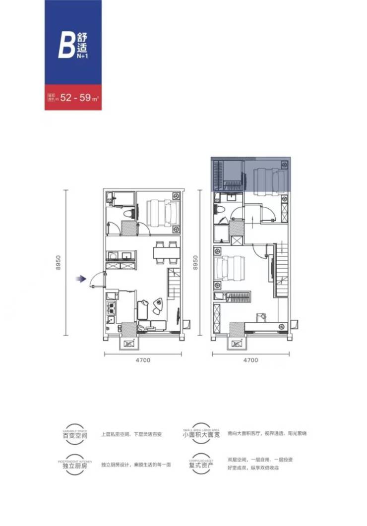 楼层分布:首层为沿街商业、2-7层为平层精装公寓、8-21层为LOFT公寓