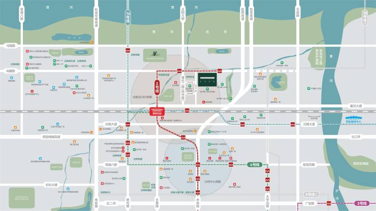 极速交通——地铁2号线(红会医院北区站)、地铁14号线、多条城市干道