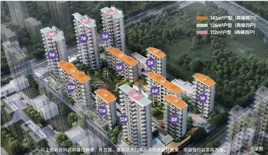 建筑类型:112㎡、126㎡户型为高层,143㎡户型为小高层