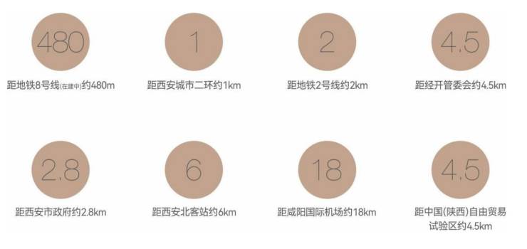 畅行交通: 半小时出城,一小时出市 北二环→绕城高速→机场高速 贯联西安咸阳国际机场 接驳城北三纵三横路网,主城区一级快速路 通达西安北站高铁站