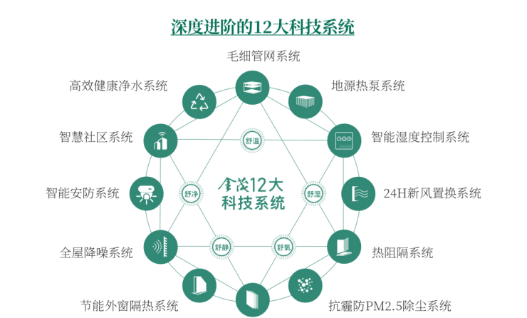 第四代住宅大面积玻璃幕墙和露台设计,对室内外温度要求极高,金茂的科技系统,营造“舒温、舒氧、舒湿、舒静、舒净”五舒健康微气候空间,可以将室内全年温度控制在20-26℃左右,让你真正能够享受到四代宅的舒适度,让新四代科技住宅,成为科技化、舒适化生活的最优解。