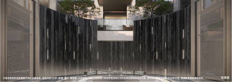 8m空中星光飞瀑映衬巨大圆形空间,光照心灵。地面镶嵌巴西潘多拉奢石,与安哥拉黑石材为背景的水幕流动融合,秩序井然的光之剧场。