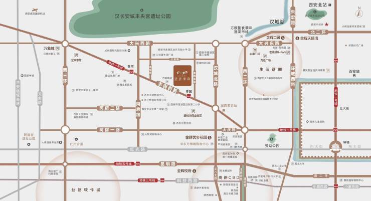 自然鲜氧为邻| 北邻约4.8平方公里的汉长安城未央宫国家遗址公园,城市级鲜氧生态绿境,自然与生活美好共生。