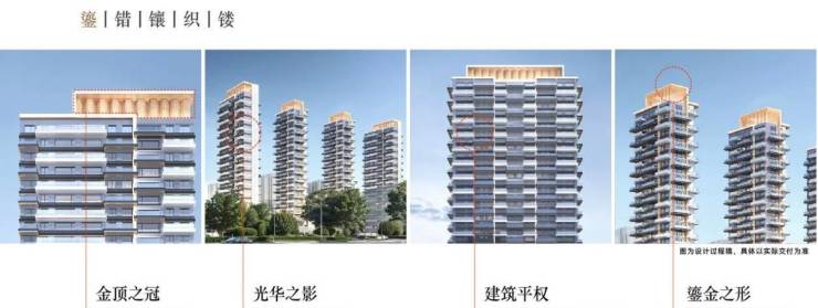 酒店式门庭+流金塔冠+双心四轴五园景观+主题架空层+超千方奢配会所