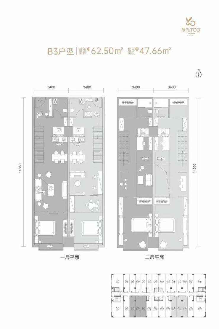 建筑面积约55-110㎡ 5.45米层高双维空间