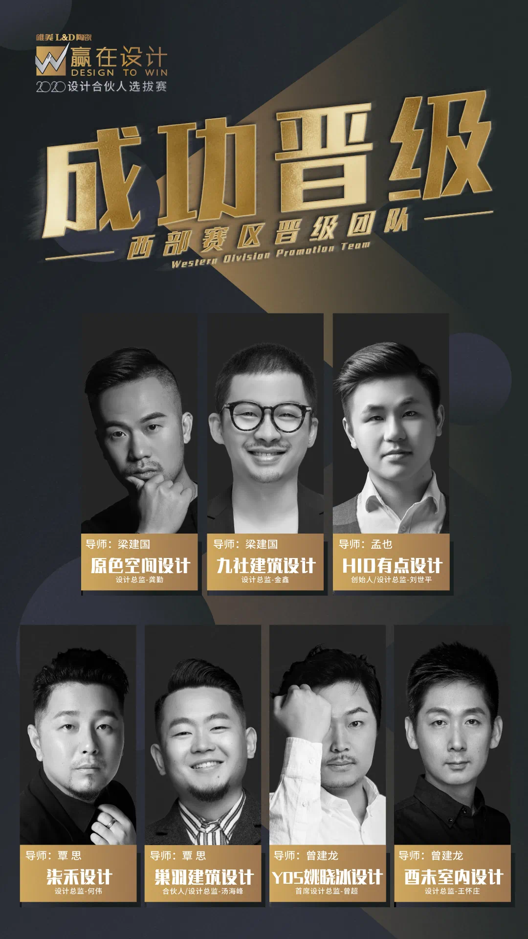 经过16位设计师精彩竞演,最终7个设计团队,凭借自身硬核实力,赢得导师青睐,成功晋级年度总决赛!西部赛区成功晋级的七强设计团队名单如下: