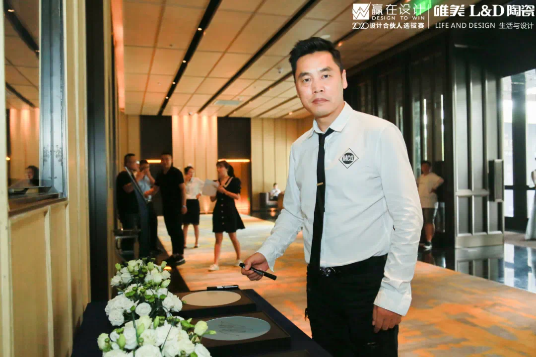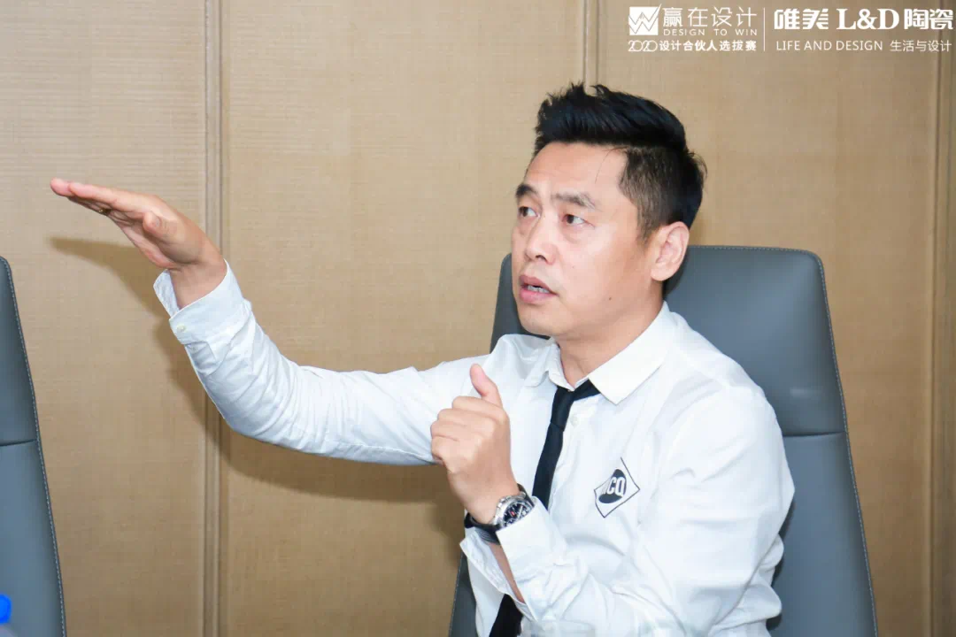 ▲广州市领路营销策划机构创始人 孙文松先生- - -此次比赛,主办方唯美L&D陶瓷也携2020“X岩板”系列新品为参赛选手助威。