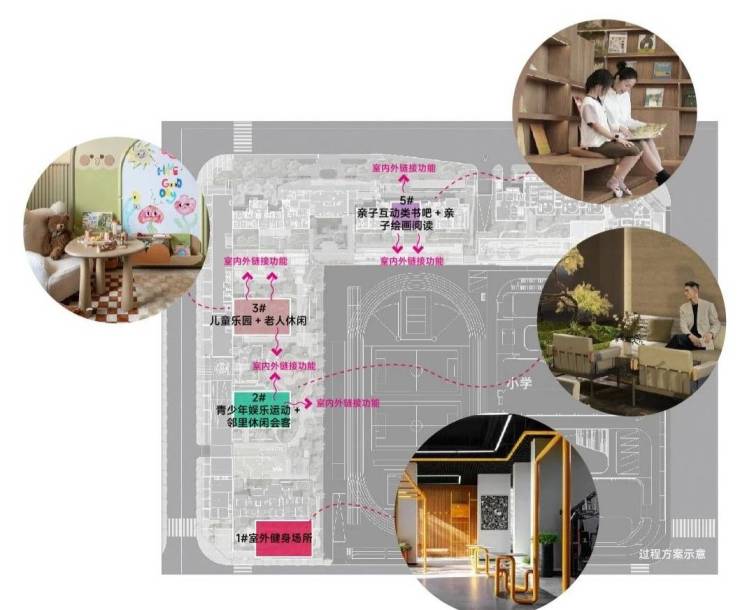 部分楼栋首层架空设计,规划预留亲子阅读、童玩、会客、健身等全龄段主题空间