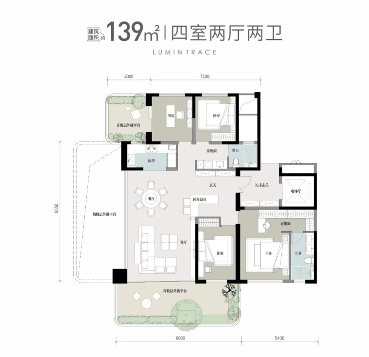 【户型面积】:99㎡-170㎡奢适四代宅