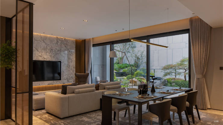 与首层庭院通过垂直景观链接,自然采光通透明亮