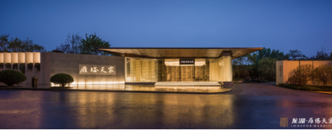 大屋檐、庑殿、紫铜门等精神符号。以紫铜色的木色、冰花蓝石材的青砖、立面纹饰的格栅,传统中式风格和西式建筑艺术相融相生。优质融合中式礼序美学与西式建制尺度,整合现代文明与古老传统艺术,营造承续皇家礼序的东方藏本院落。只有如此的精雕细琢,才是对大雁塔的深深敬畏。