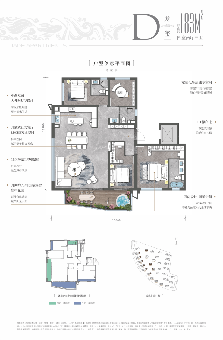 建筑面积约143-183㎡宽景云端院落