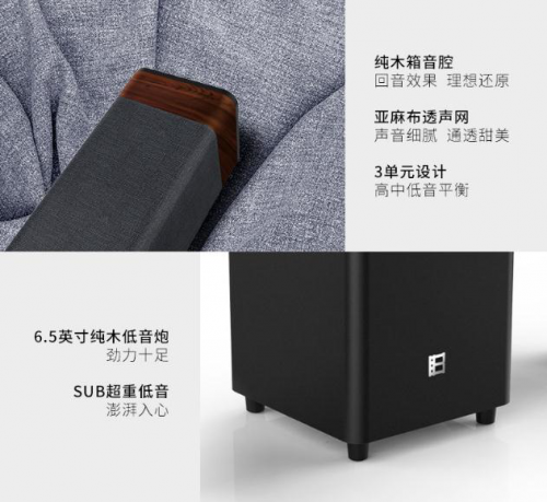 品物从用户的角度仔细打造每一个细节,透过一致的设计语言串联起每一个部件。全无线音响选用先进大提琴上常见的复合木材配合亚麻网格布透声网,封闭式的箱体结构让声音更纯正,并支持DTS与杜比科技,带来720度圆润的回音与细腻的透音建造先进音响体验。