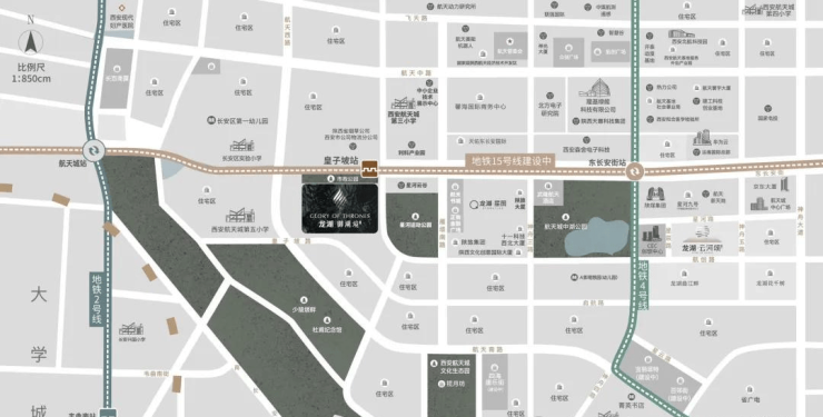 文脉中心:航天核心地标揽月阁,传承了古城西安的盛唐文化,对望大雁塔、大明宫遗址公园;同步项目南侧即为少陵原,更有西安唯一一个杜甫纪念馆;