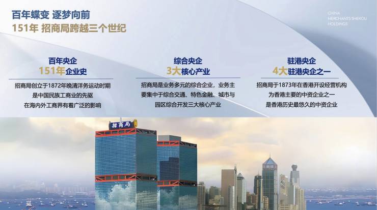 百年招商局,历经151载风雨洗礼,双世界500强,资产规模位居央企第一。跨越三个世纪,创立轮船招商局、唐胥铁路、南洋公学、蛇口工业区、招商银行、海上世界等时代巨著,刻写中国辉煌的印记。