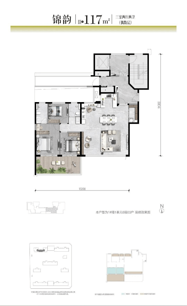 建筑亮点:1楼部分带花园,2楼以上带错层空中庭院设计