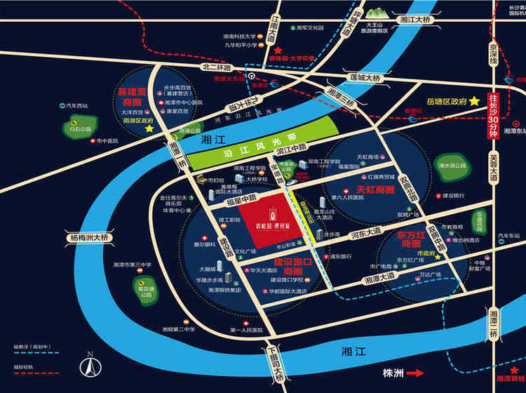 其他东方红商圈、建设路口商圈、天虹商圈、湖湘公园、木鱼湖公园、菊花塘公园、湘潭体育中心、湘江风光带