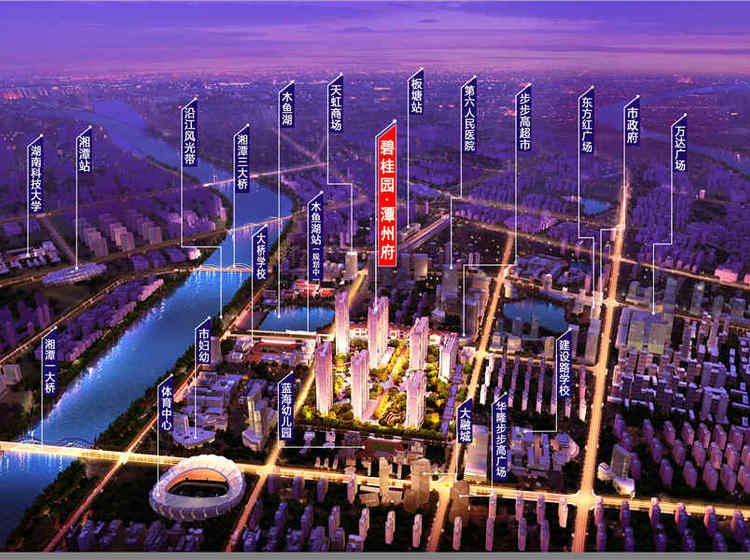 碧桂园·潭州府隶属于湘潭地标级商业中心——建设路口商圈,紧邻16万方木鱼湖公园,1公里直达滨江风光带,属于湘潭五大名校之一的大桥学校学区范围,进则繁华簇拥,退则宁静泰然。