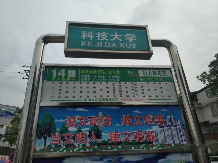 赤马路口(公交站):107路;117路;13路;14路;26路;26路(冯家村方向);35路;D91路;综保区河西专线;科大路口(公交站):117路;13路;科技大学南门(公交站):26路(冯家村方向);二十三冶(公交站):107路;117路;13路;14路;26路;26路(冯家村方向);35路;D91路;综保区河西专线;科大南门(公交站):107路;117路;13路;26路;26路(冯家村方向);35路;D91路;综保区河西专线;科大御花苑(公交站):14路;区武装部(公交站):107路;117路;13路;14路;26路;26路(冯家村方向);35路;D91路;综保区河西专线;雨湖区武装部(公交站):117路;26路(冯家村方向);石码头(公交站):107路;13路;26路;26路(冯家村方向);35路;D91路;综保区河西专线;亚华花园(公交站):14路;