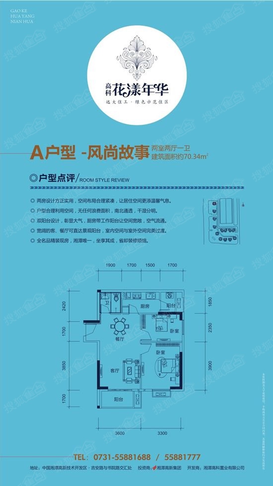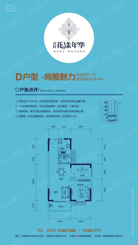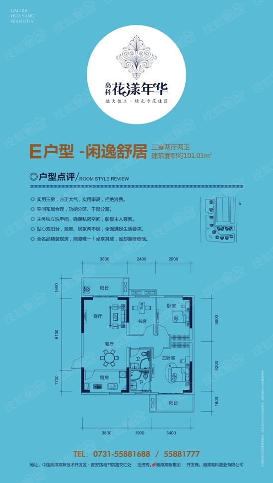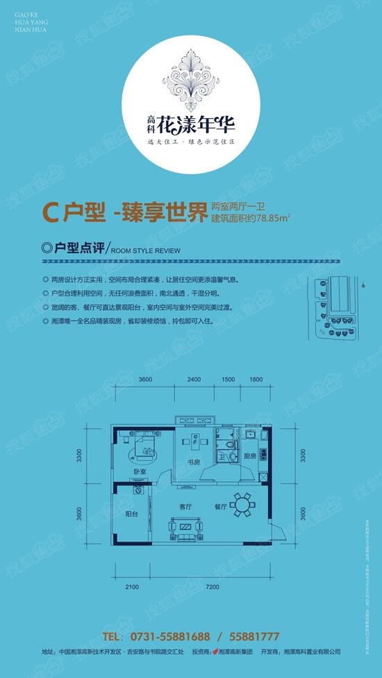 高科花漾年华位于湘潭市书院路与吉安路交叉口东北角,总用地面积42085.65平方米,总建筑面积193558.56平方米(其中计容建筑面积159492.24平方米,不计容建筑面积34066.32平方米),容积率3.79,建筑密度24.98%,绿地率35.60%,停车位1221个(其中地面停车位285辆,地下停车位936辆),建筑物高度86.8米。