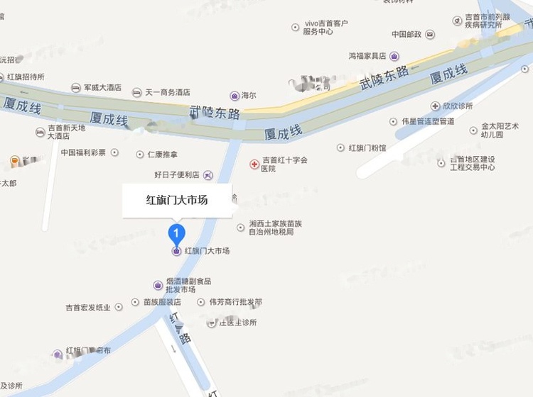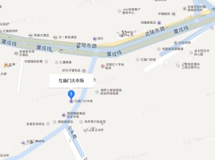 【红旗门大市场】产权年限:29年。 位于吉首市红旗门红旗路和武陵路交汇的黄金三角,坐落在传统商业旺地红旗门农贸市场的旧址,占据红旗门片区的商业核心。项目传承了红旗门悠久的商业历史地位,人气旺盛,商户云集,商业潜质巨大。吉首城区老商圈,出租率达到98%。毗邻步步高商圈,辐射周边5W人的大型批发市场和农贸市场!