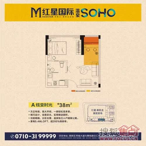 红星国际温泉•SOHO,采用全板式规划。在空间上进行大胆创新,最小开间5.4米,较大开间接近8米,扩大采光面,减少采光进深,真正做到全景采光。同时,通过合理规划布局,实现公寓中罕见的面积赠送。35—48平米空间,一房幻变两房!