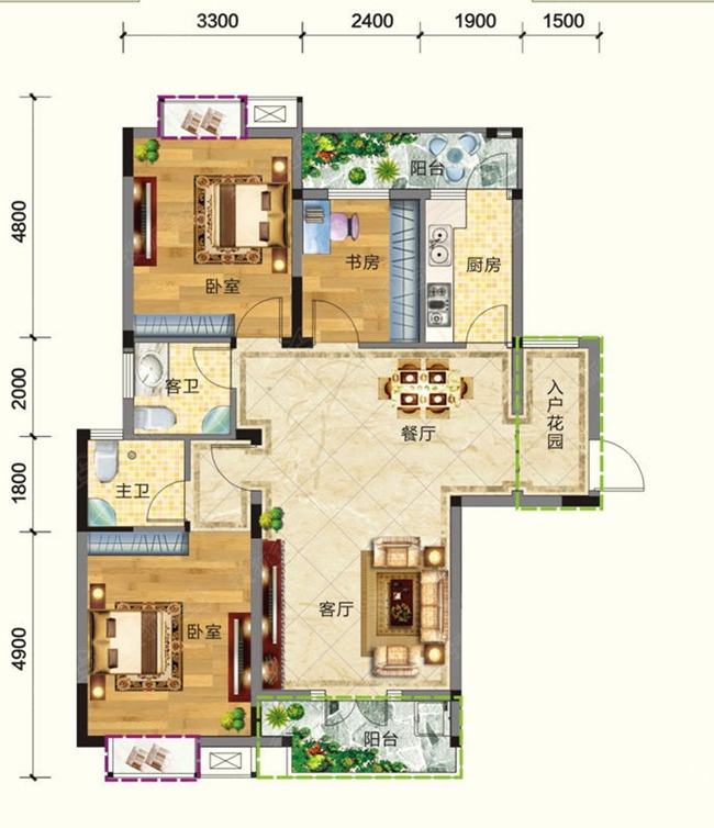 项目充分利用用地高低起伏的特点,除了常规的绿植外,更是将水、缓坡、下沉广场、园林景观,规划桃花园、竹谷园等九大主题公园、一大湖景……景景不同。园林内配合高层建筑的错落,小道、缓坡、下沉式广场,起伏的景观轴线,不一样的社区环境。