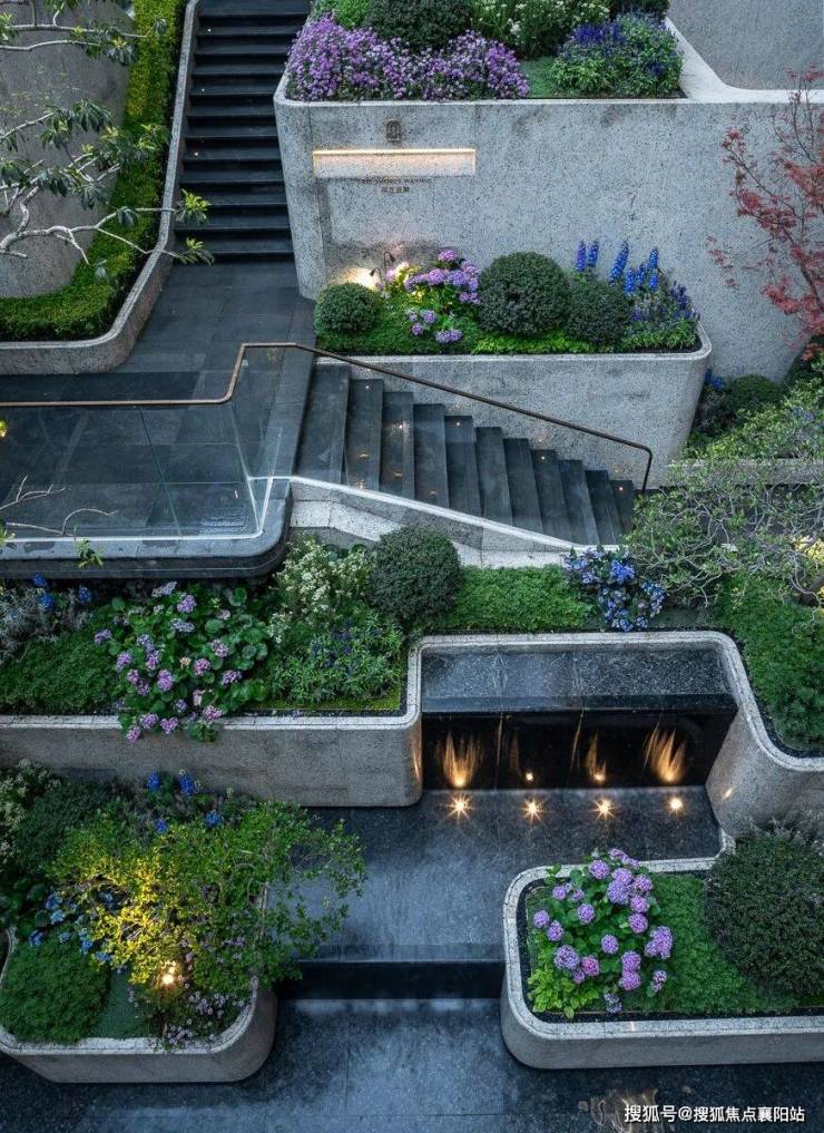 利用社区约3米的天然高差,这里打造了约700㎡的递进式台地景观。你会发现,这里的归家路不再是枯燥的直线: