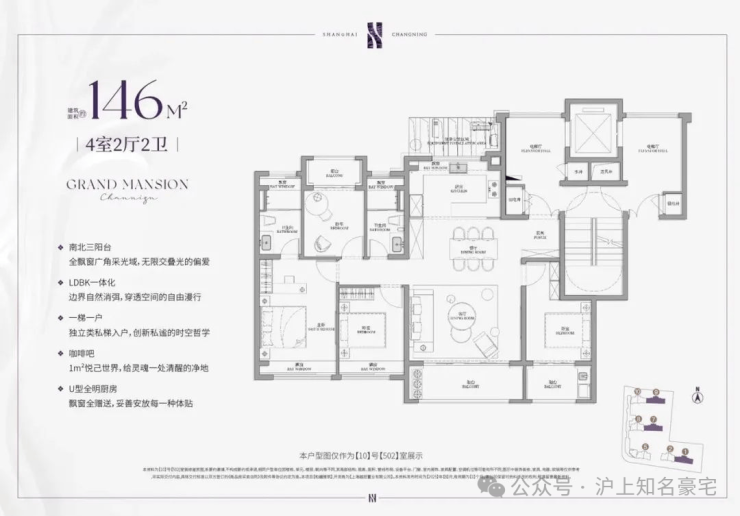 项目旗舰户型、内中环稀缺神户型 , 四开间朝南、南北三阳台、4.8 米宽幕横厅、双主卧套房 。