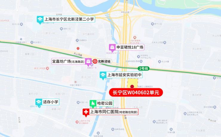 轨道交通(黄金 2 号线) : 直线距 2 号线北新泾站仅 300 米(步行约 5 分钟),距威宁路站约 800 米 。2 号线作为上海 **“国际黄金线” ,东向 2 站中山公园、4 站静安寺、6 站人民广场、9 站陆家嘴,直达浦东机场;西向 3 站虹桥 2 号航站楼、4 站虹桥火车站。15 分钟达主城核心、30 分钟覆盖长三角枢纽,无论是日常通勤、商务出行还是跨城往来,都 便捷高效、一步到位 **。