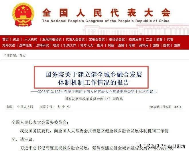 近日,国务院关于建立健全城乡融合发展体制机制工作情况的报告已提请全国人大常委会议审议。