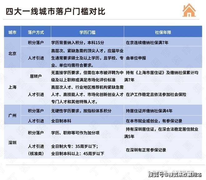 从7个超大城市落户门槛来看, 四大一线城市落户门槛相对较高 ,其中北京和上海依然是落户门槛最高的两个城市,积分落户社保要满七年,深圳和广州分别是五年和四年;从学历门槛来看,深圳是唯一仍对全日制大专生开放直接落户通道的一线城市。