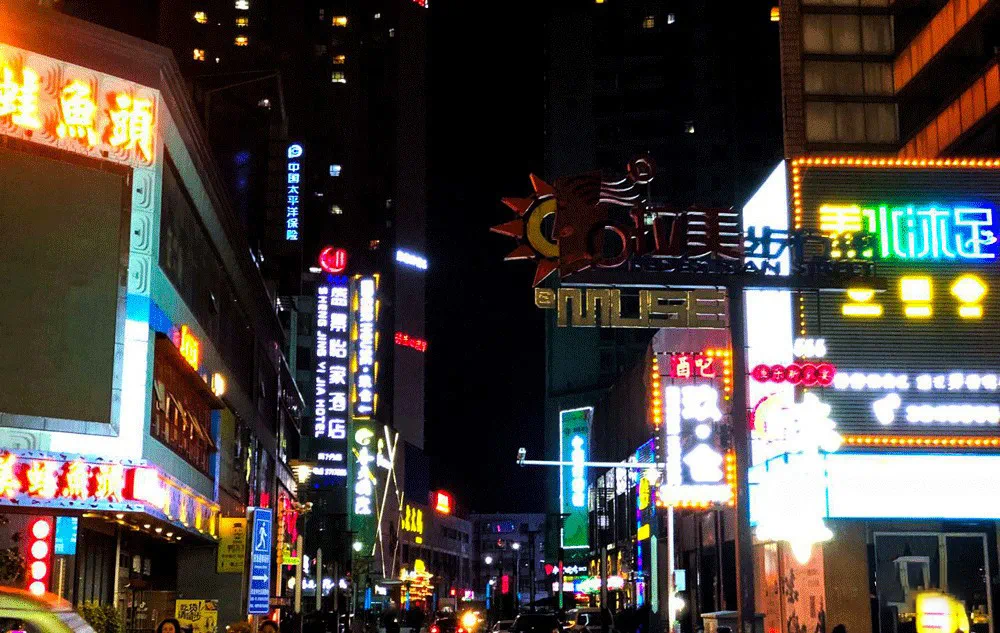 都说东风路是甜的,因为东风路最早多是糖果批发店,红火的店招牌看着就喜庆;只有到了临近夜幕,往前再走走,才能看见它“活色生襄”的另一面。