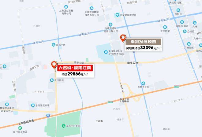 老闵行价格已达到5.9万/㎡,奉贤新城价格也在4万/㎡+,大名城·映雨江南均价29866元/㎡,价格差非常明显。