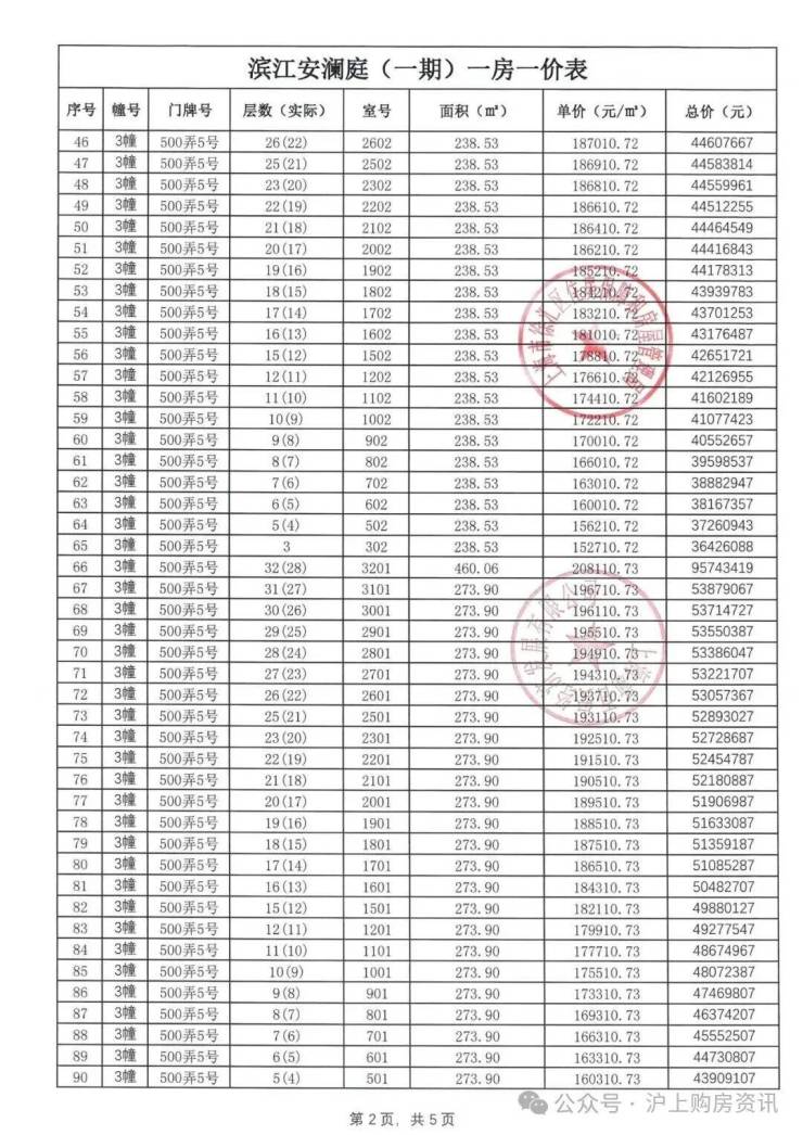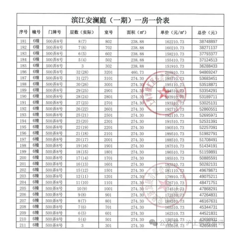一房一价表