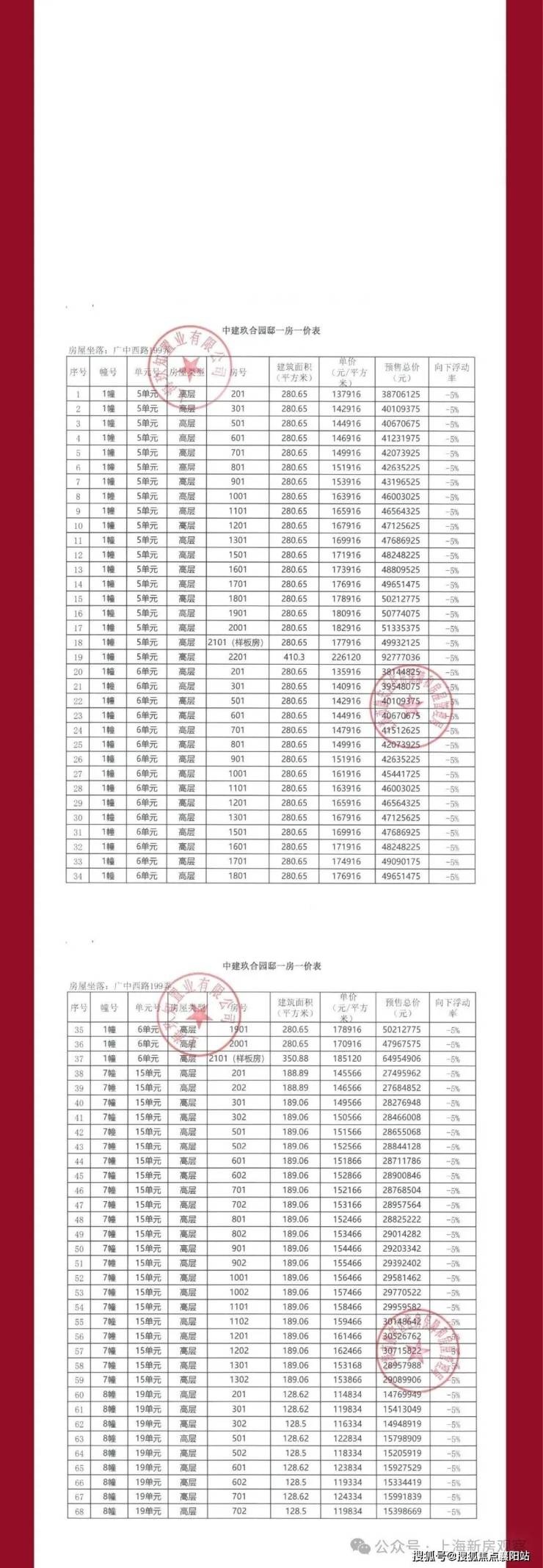 上期一房一价表如下