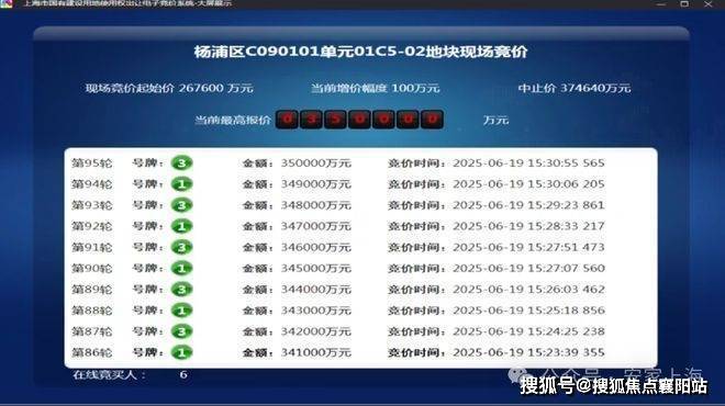 6月19日,2025年五批次土拍,保利发展经过95轮竞价摘得杨浦东外滩01C5-02地块(即保利外滩曜) ,成交总价350000万元,楼板价95530元/㎡,溢价率30.79%。